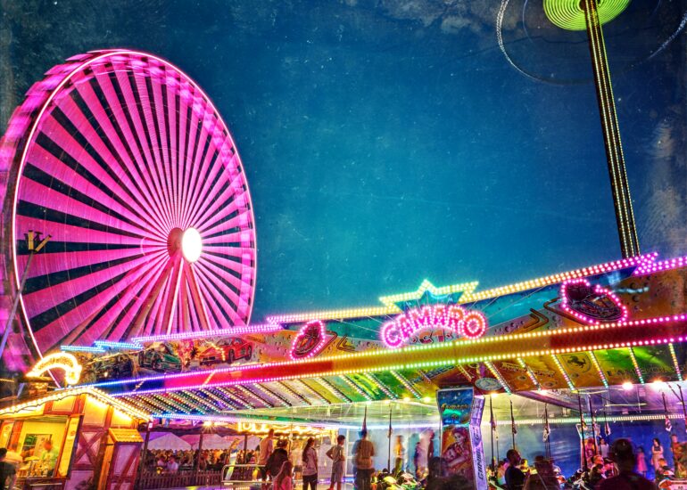 In the Realm of Colors and Dreams In the realm where colors dance and twirl,Luminous lights in a vibrant whirl,A carousel spins, a timeless...